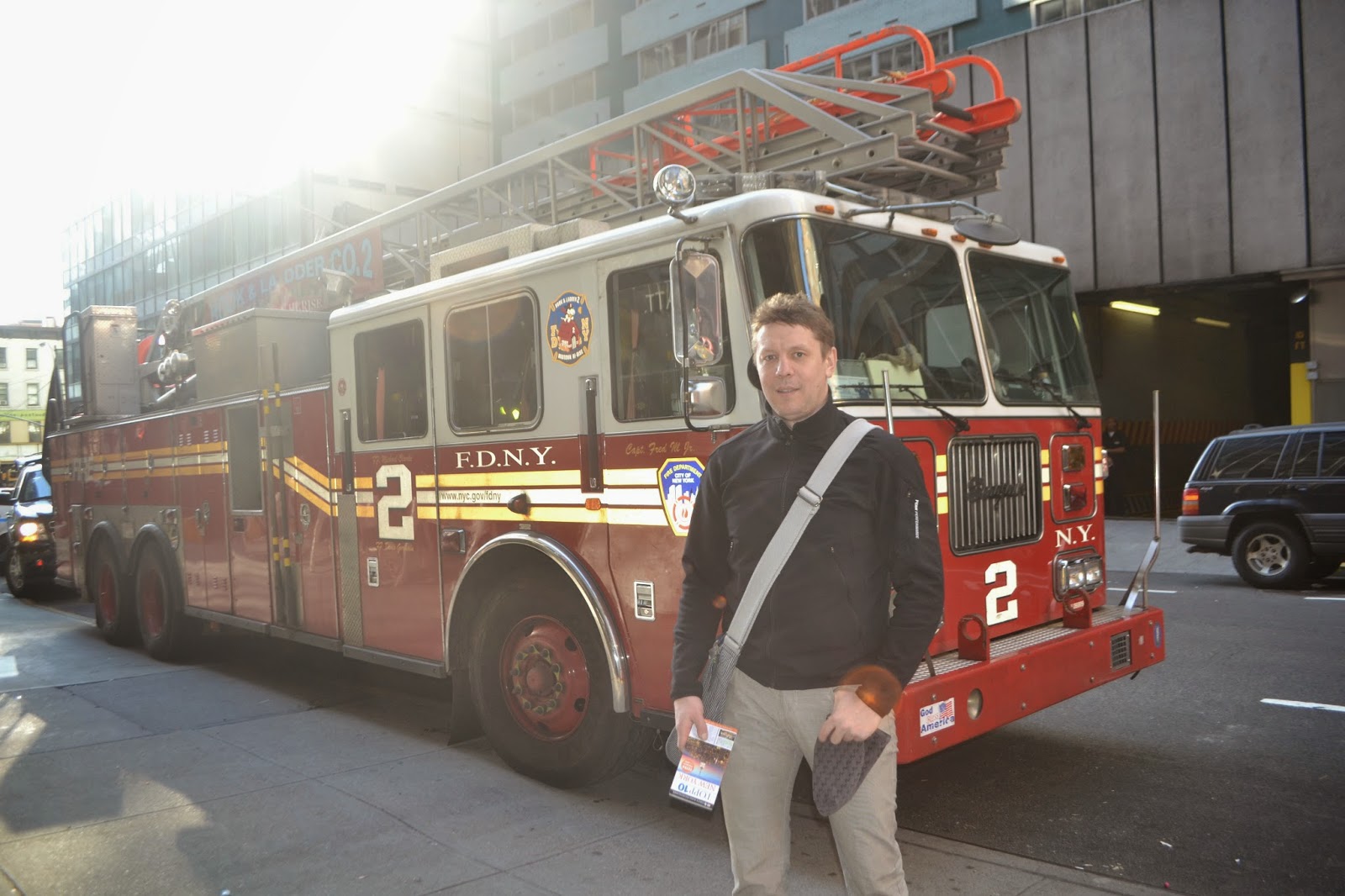 Det är klart att man ska fotas med Brandbil i NY! ;)