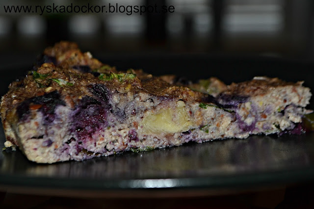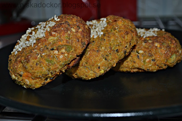 3. Blanda ner i de mixade grönsakerna soltorkade tomater, den stekta svampröran, frön och ägg. Blanda väl.