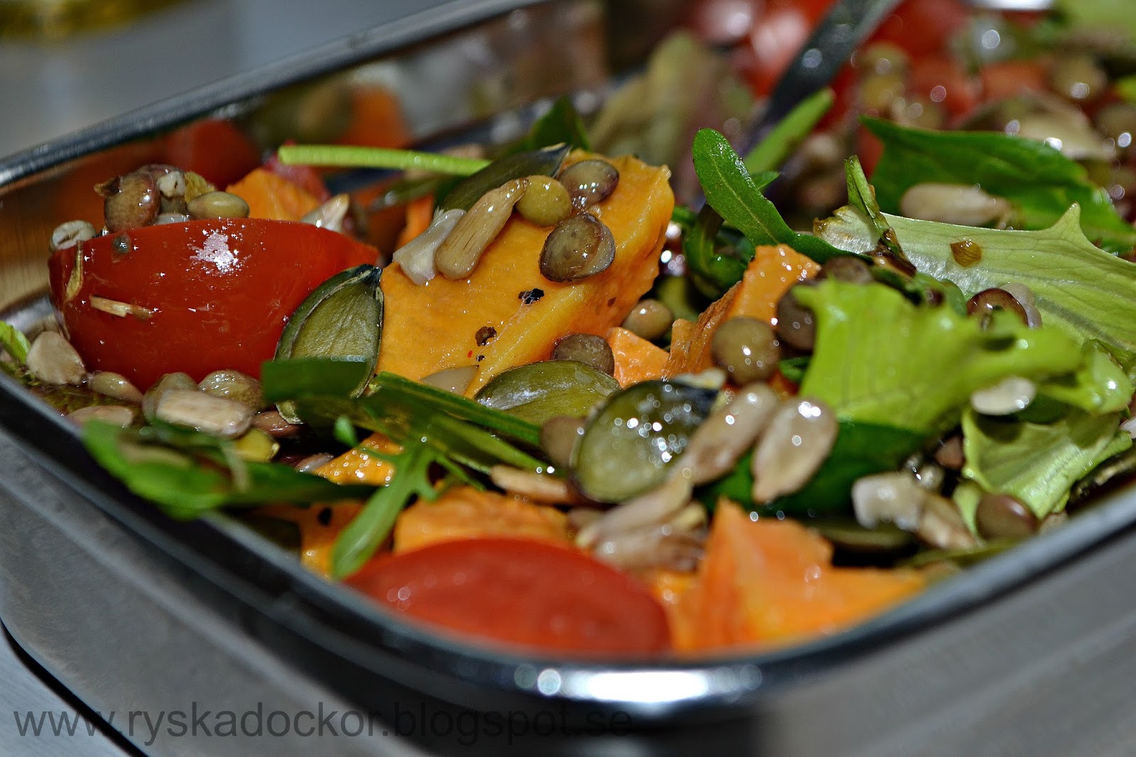 Ca 0,5 dl sesamfrön, solrosfrön eller hampafrön för tuggmotstånd
